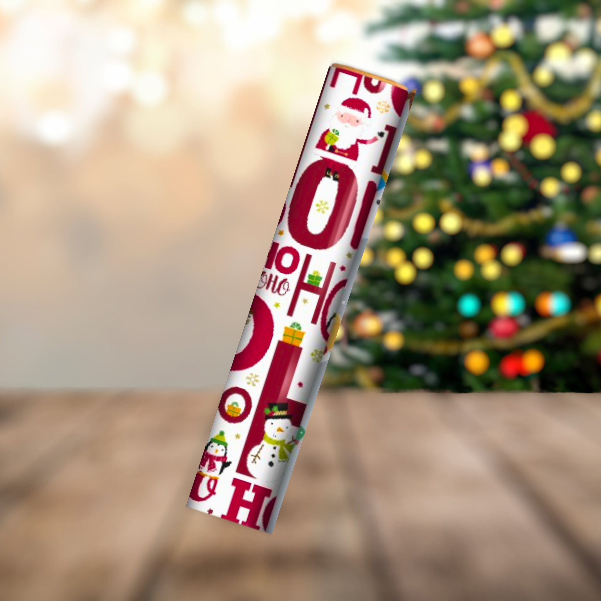Make your gifts stand out this season with our joyful and colourful Ho Ho Ho Christmas Gift Wrap Roll! This 4-metre roll is packed with festive personality — featuring bold red “Ho Ho Ho” lettering, cheerful snowmen, jolly Santa Claus, and playful penguins, all dancing across a snowy white background that bursts with seasonal charm.