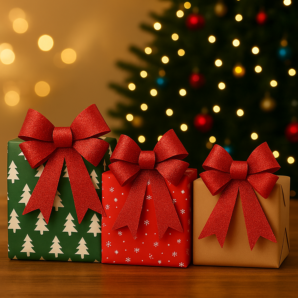 Each pack contains reusable, pre-tied bows that are lightweight and easy to attach using adhesive backing or twist ties. The structured design ensures they hold their shape, even on larger gifts or door decorations. Perfect for Christmas hampers, stocking fillers, or party décor, these Red Glitter Gift Bows are as versatile as they are beautiful.