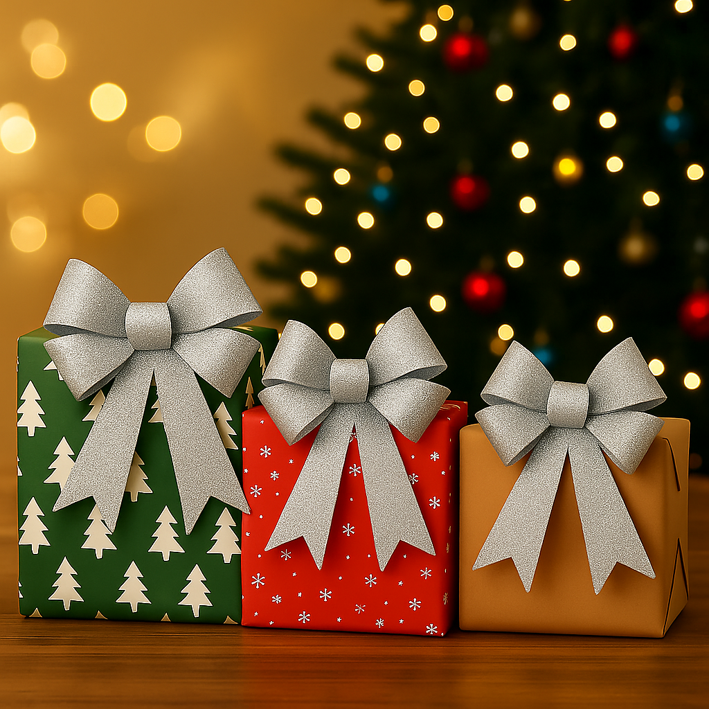 Bring home the shimmer this season – with our Silver Glitter Gift Bows, your decorations will feel as magical as a snowy Christmas morning.