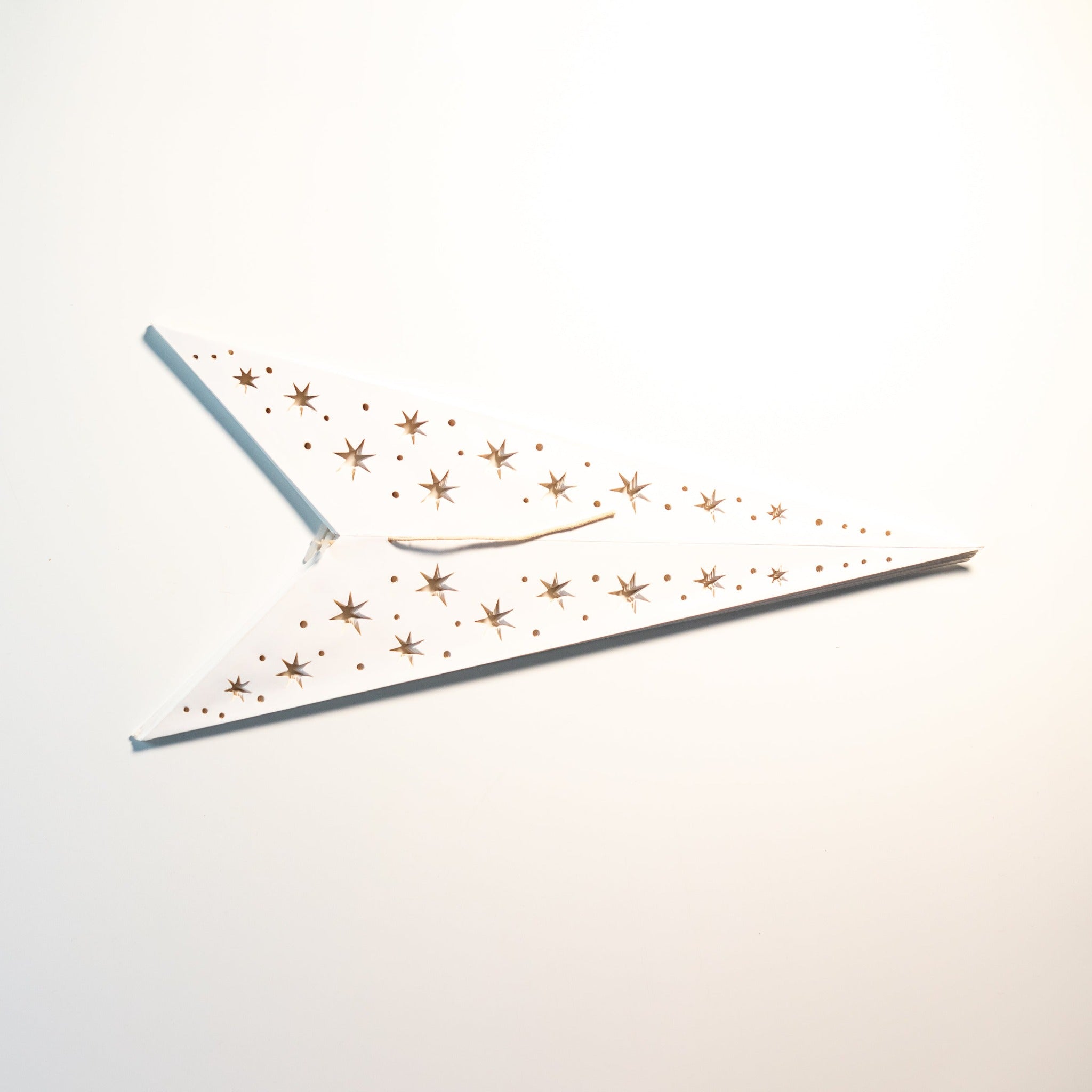 Transform your home or venue with this spectacular large white star lantern. Hand-cut with hundreds of tiny star-shaped perforations, it casts magical projections of starlight that twinkle beautifully across walls and ceilings.