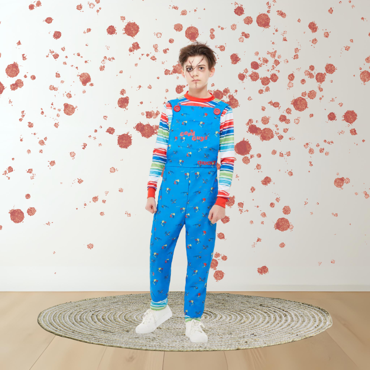 Includes everything your little terror needs to recreate Chucky’s infamous look — just add face paint or a toy knife (optional!) for the full fright-night effect. Lightweight and comfy enough for parties, school discos, or a night of spooky fun.