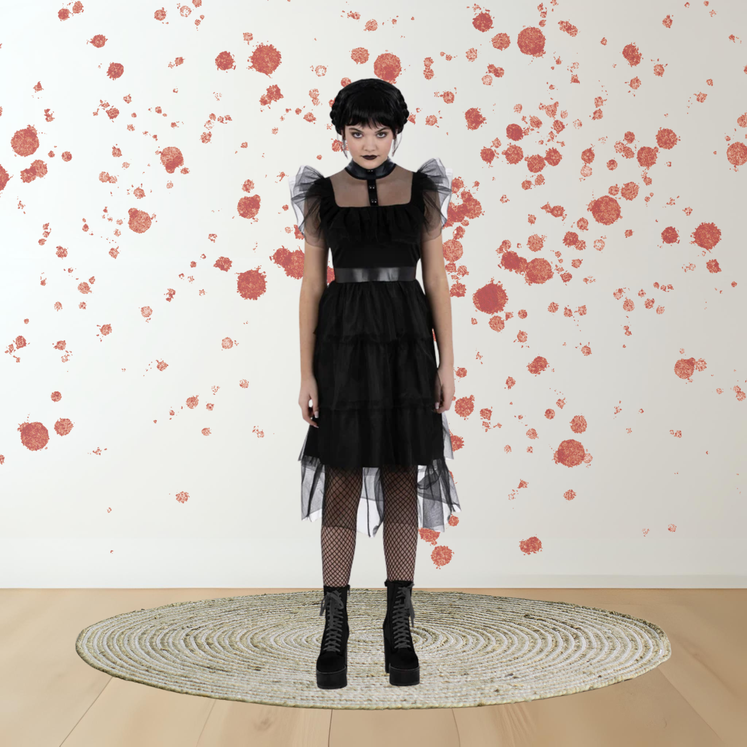 Made from lightweight, breathable materials, this dress is ideal for Halloween parties, costume discos, or any child ready to channel their inner Wednesday. Simply pair with dark tights and boots to complete the iconic look!