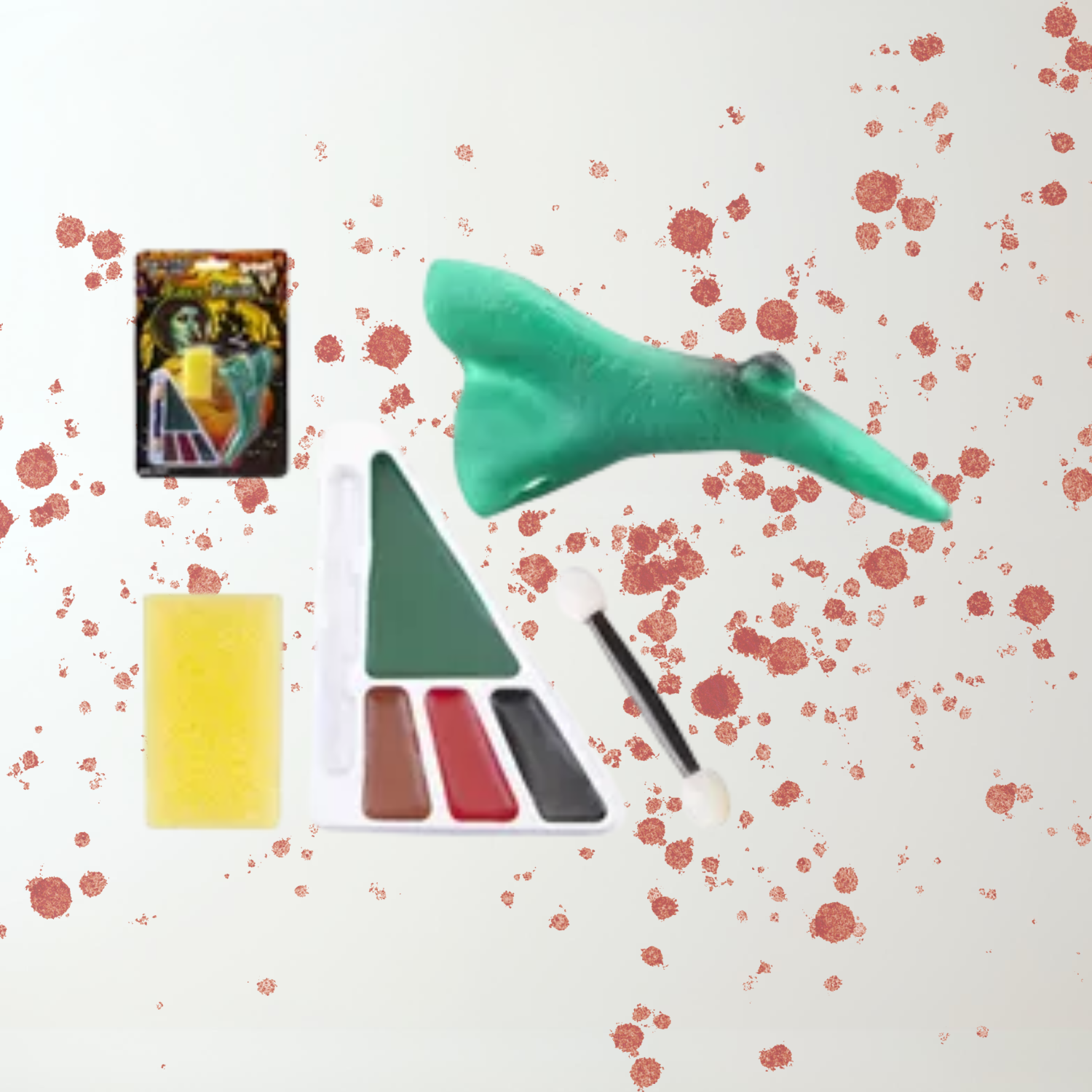 - 4-colour face paint palette (green, red, black, brown)