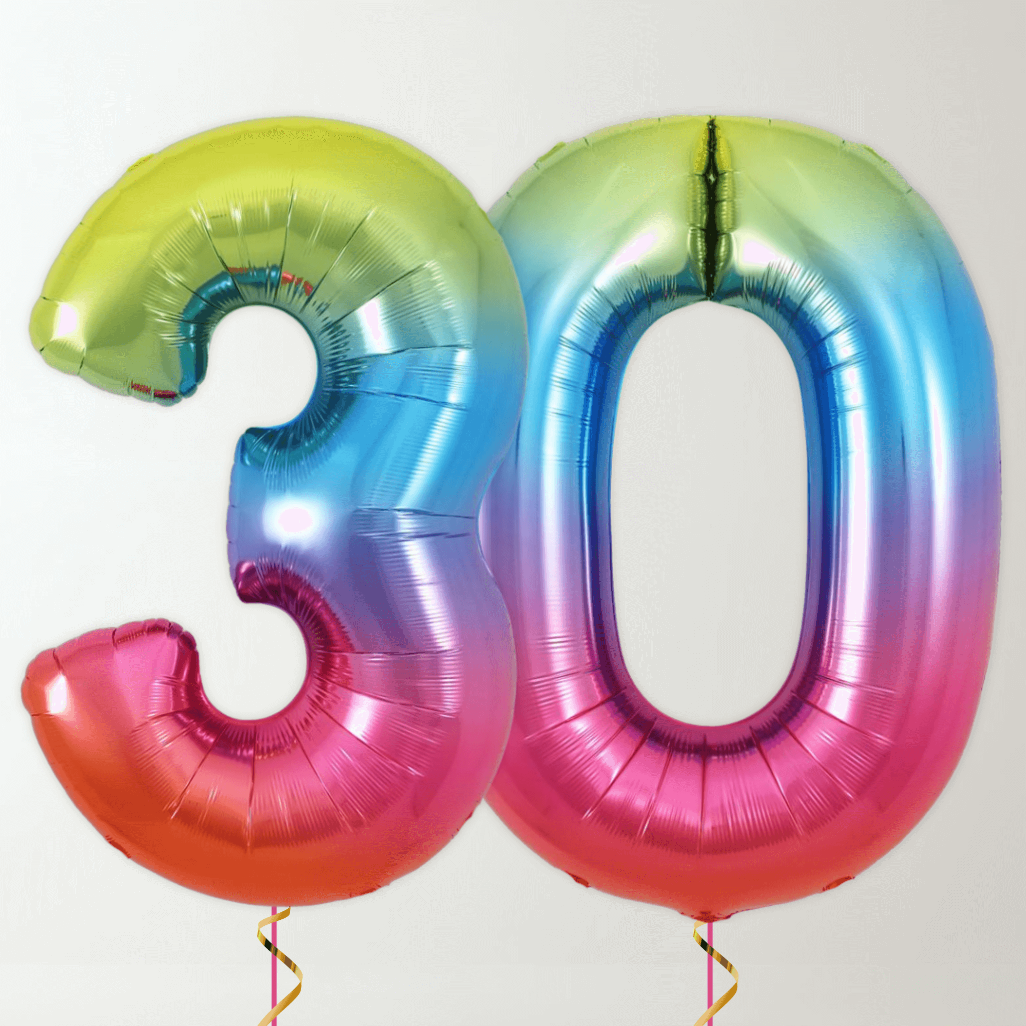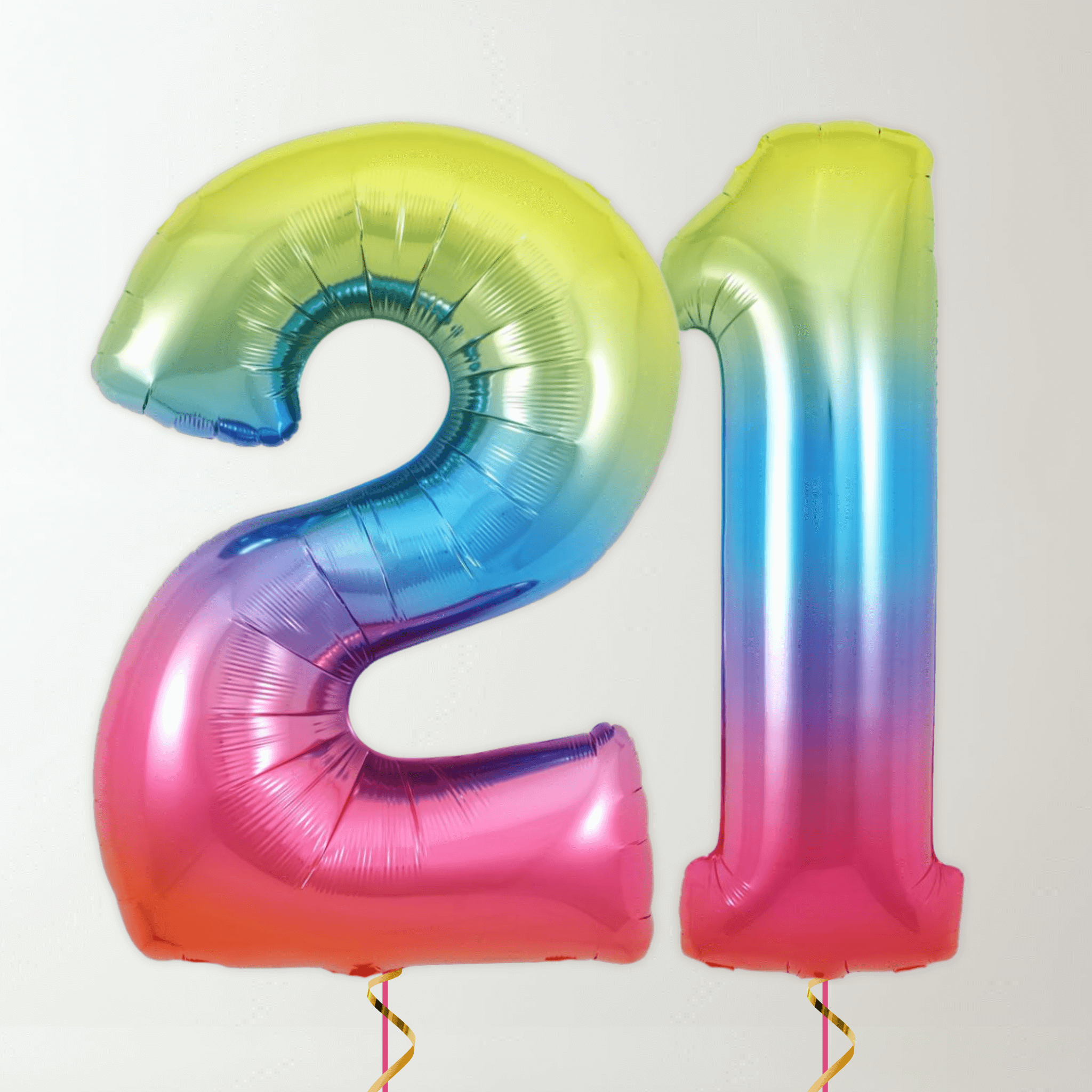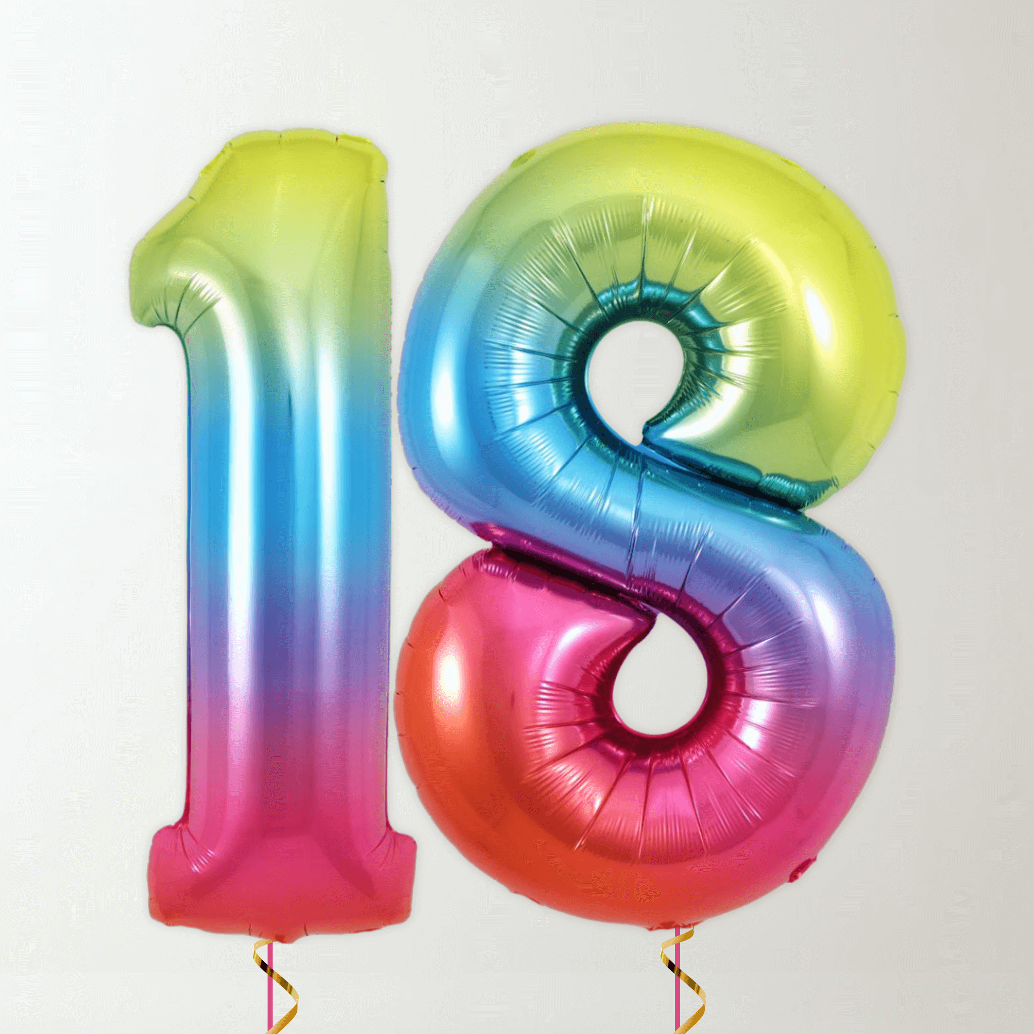 Each number arrives fully inflated with helium, tied, sealed, and ready to float — giving you effortless, stress-free party décor in seconds. With their glossy rainbow gradient, these balloons shine beautifully under natural and artificial light, making them a top pick for photos, party backdrops, cakesmash sessions, and colourful themed displays. They pair perfectly with blue, pink, gold, silver, purple, and pastel décor — or stand alone as the centrepiece of your celebration.