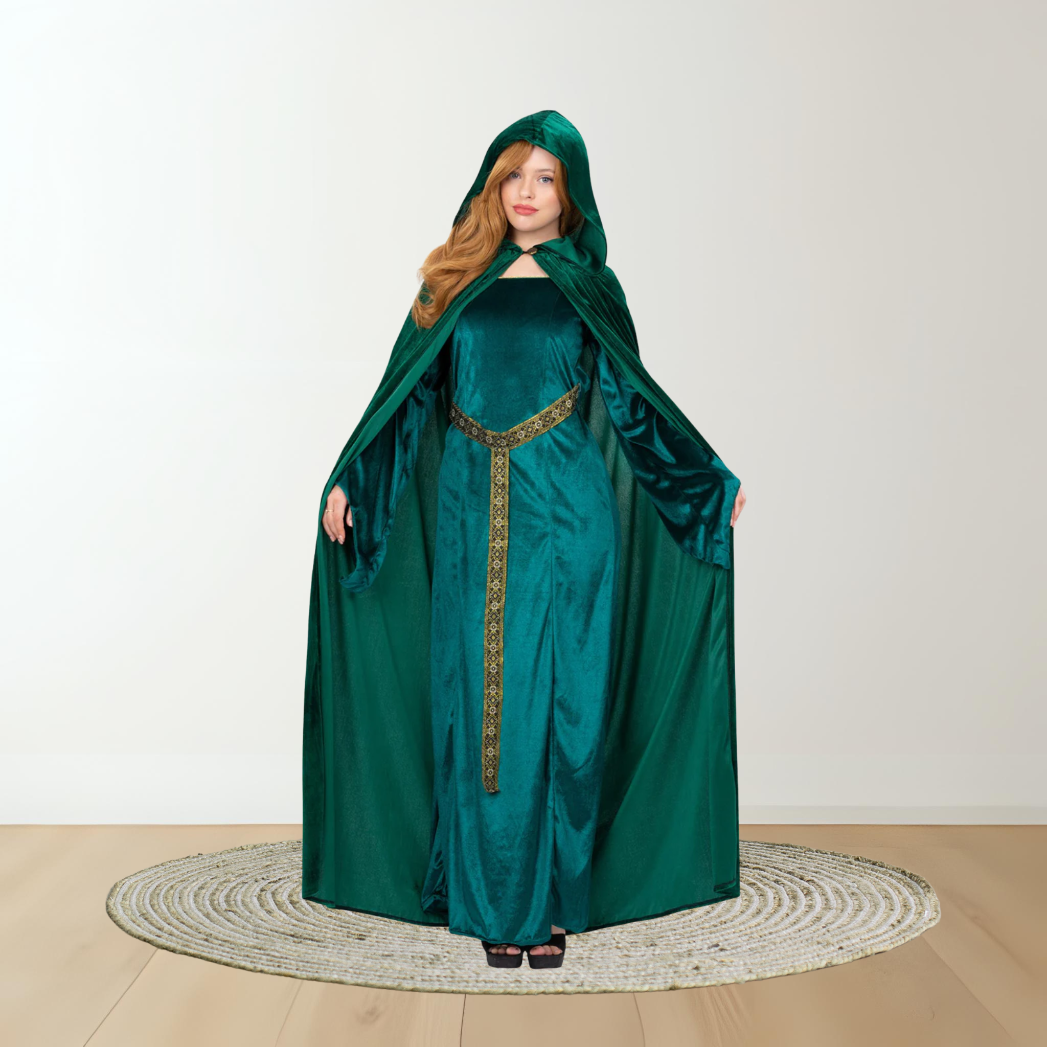 Cast a spell at your next party with this Deluxe Green Cloak for Adults – the ultimate magical touch for witches, wizards, and fantasy fans. Perfect for Hocus Pocus themed nights, medieval banquets, Halloween parties, or cosplay events.