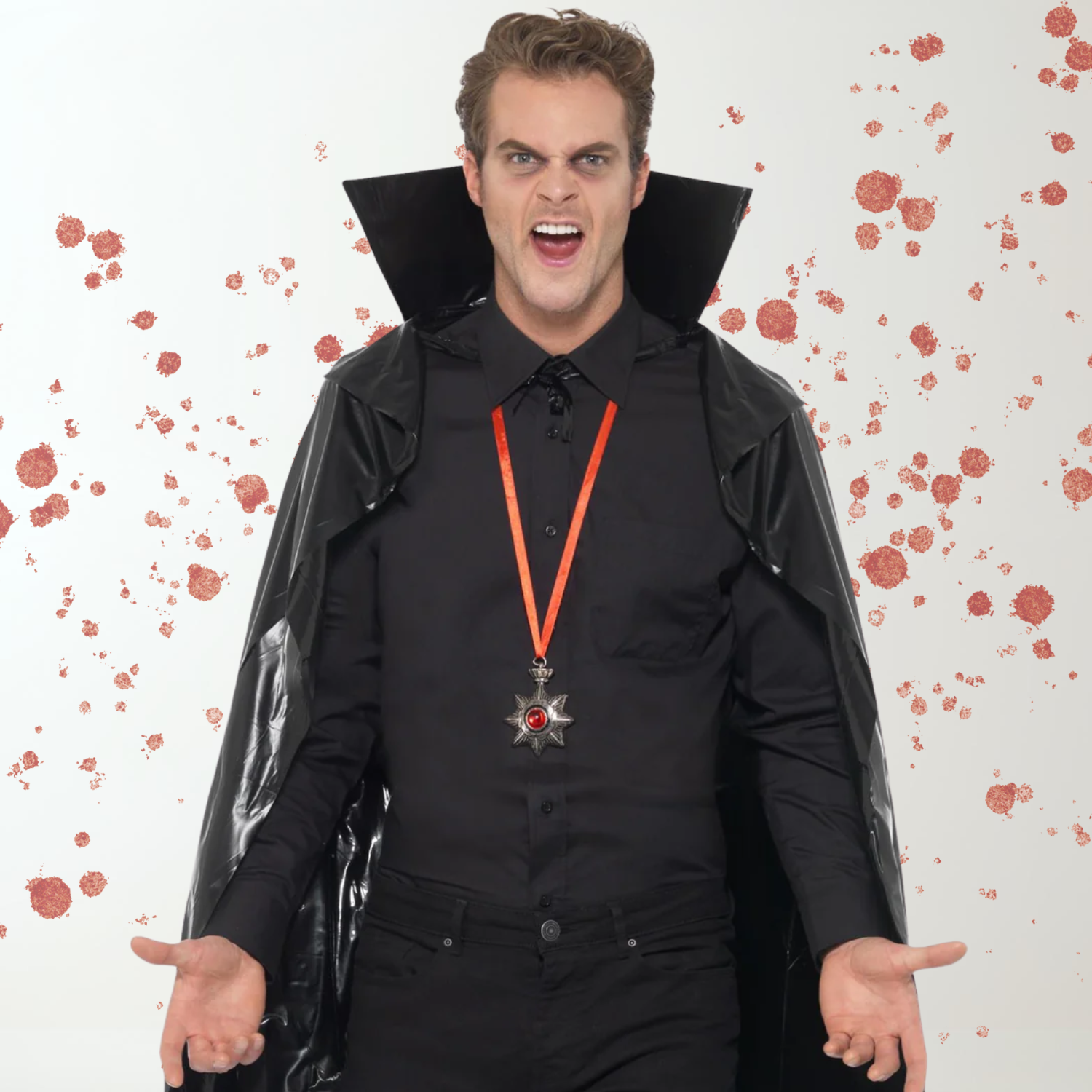 Crafted from lightweight, wipe-clean PVC, this cape ties easily at the neck and fits most adults. Whether you're going full Count Dracula or just need a quick fancy dress fix, it's a wardrobe essential for the undead and the dramatic alike.