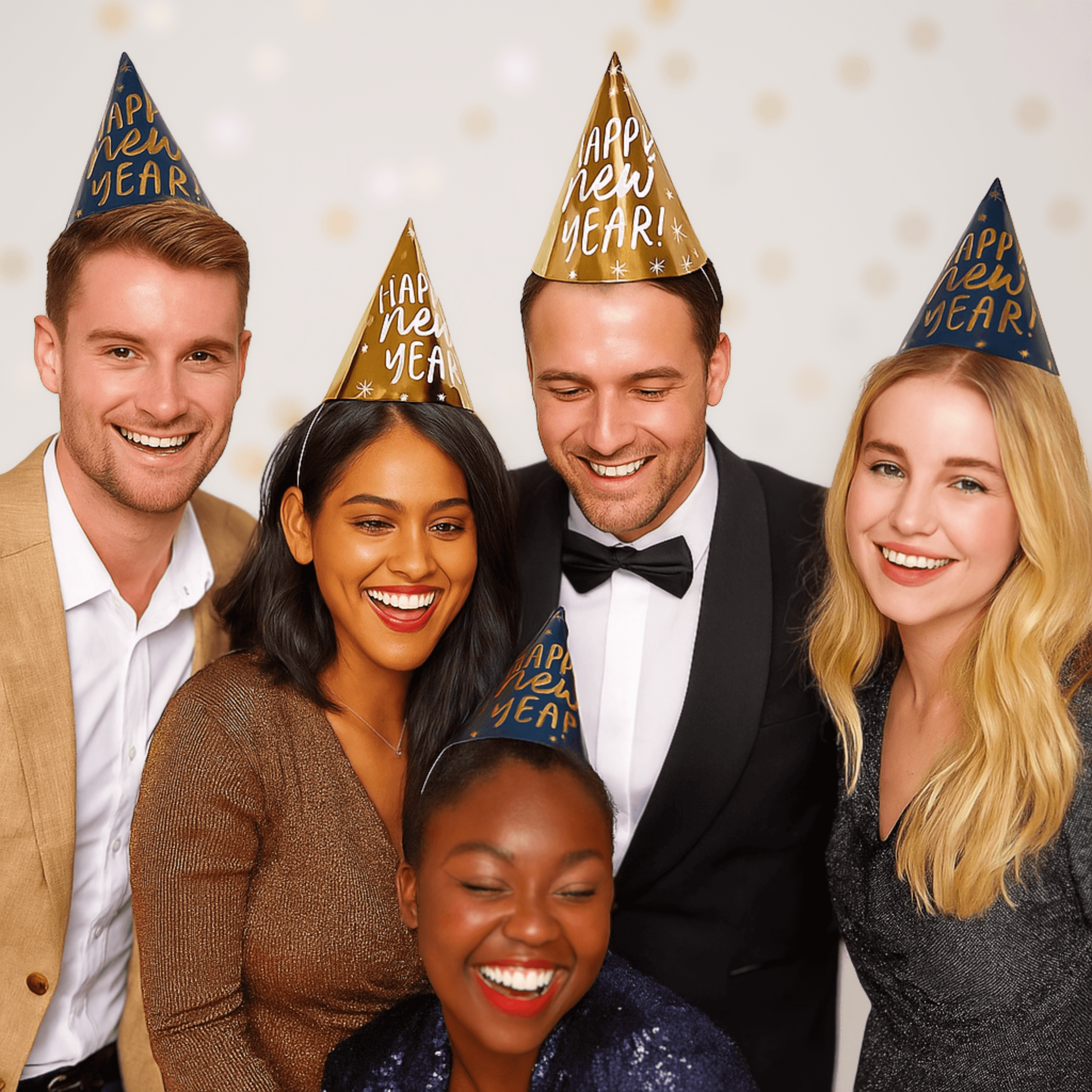 Lightweight and easy to wear, the Happy New Year Party Hats come with elastic straps and are simple to assemble – making them ideal for guests of all ages. Reusable and Instagram-ready, they’re perfect for photo booths, countdown moments, and elevating your table setup with extra sparkle.